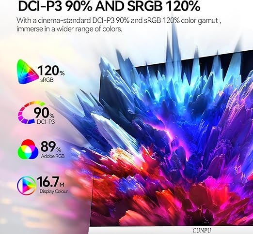 O CUNPU 27” 4K é um monitor voltado para edição de fotos e vídeos profissionais, oferecendo ΔE < 2 e cobertura de 100% do espaço de cores DCI-P3. Isso significa fidelidade máxima de cores, algo essencial para criadores de conteúdo e profissionais que exigem precisão na reprodução visual.
