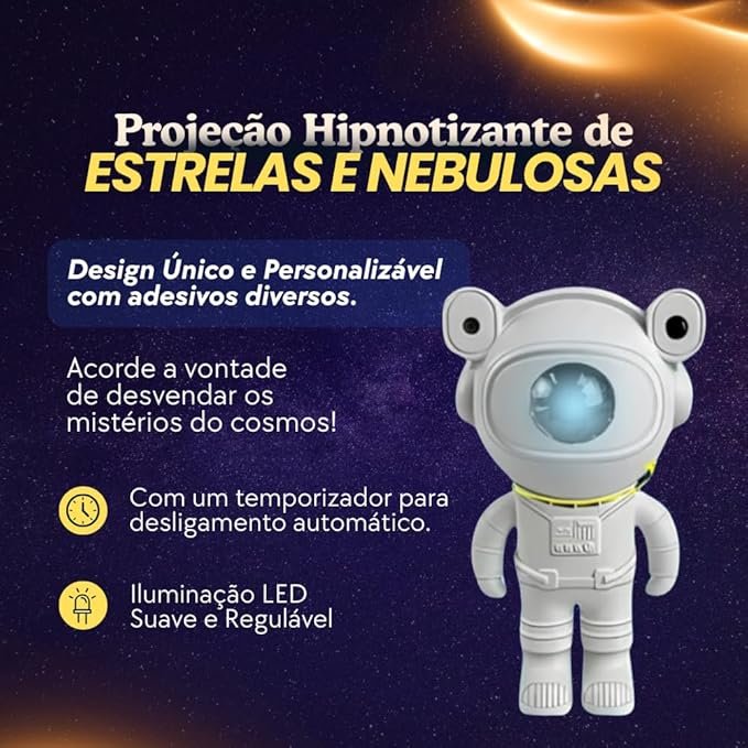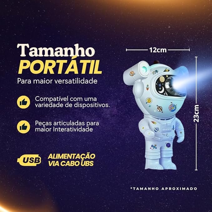 Projetor Galáxia Astronauta Premium com Luz Noturna LED