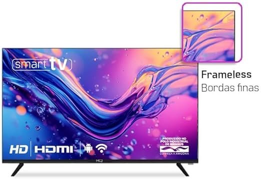 Se você procura uma Smart TV 32 polegadas custo-benefício, a HQ HQS32NKHM é uma excelente opção para 2025. Com tela sem bordas e design slim, o modelo entrega modernidade e elegância, sendo ideal para quem deseja uma TV que valorize a decoração do ambiente. Sua tela LED de 32 polegadas com resolução HD oferece imagens nítidas e agradáveis, tornando-se uma ótima escolha para assistir filmes, séries e programas do dia a dia.
