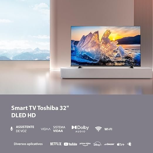 Seu visual clean e sofisticado não apenas embeleza o espaço, mas também reflete a qualidade e a atenção aos detalhes que a Toshiba oferece em seus produtos. Além disso, a TV é uma opção prática para quem busca um aparelho que combine funcionalidade e estilo.